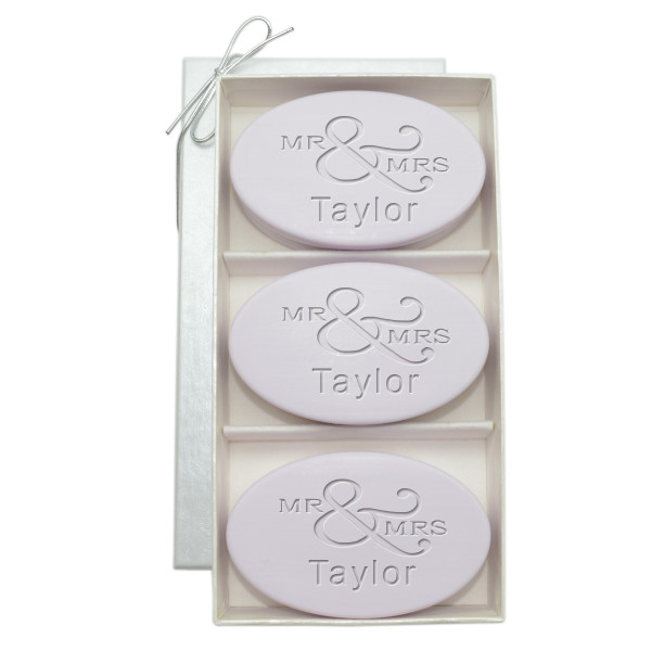 Three, 5 oz., Triple Milled, Oval VT Made Soap Bars. Pearlescent white, brocade textured box comes gift ready with a silver bow . Total wt. 15 oz. Lavender: Rejuvenate, relax and calm your soul with this heavenly scent. True lavender connoisseurs appreciate this timeless favorite. Time to rejuvenate is priceless and you are worthy. Available in 5 oz. Oval.